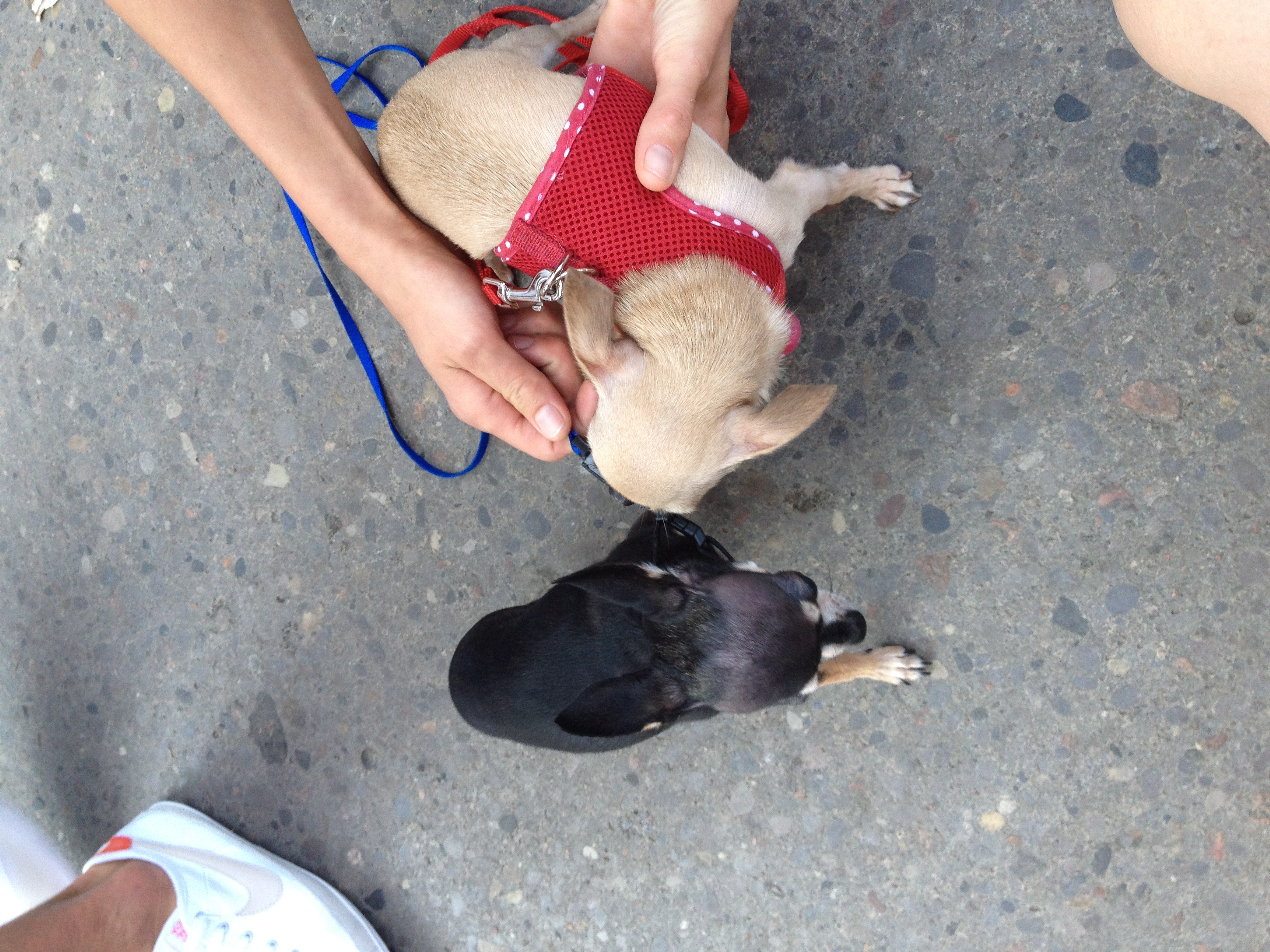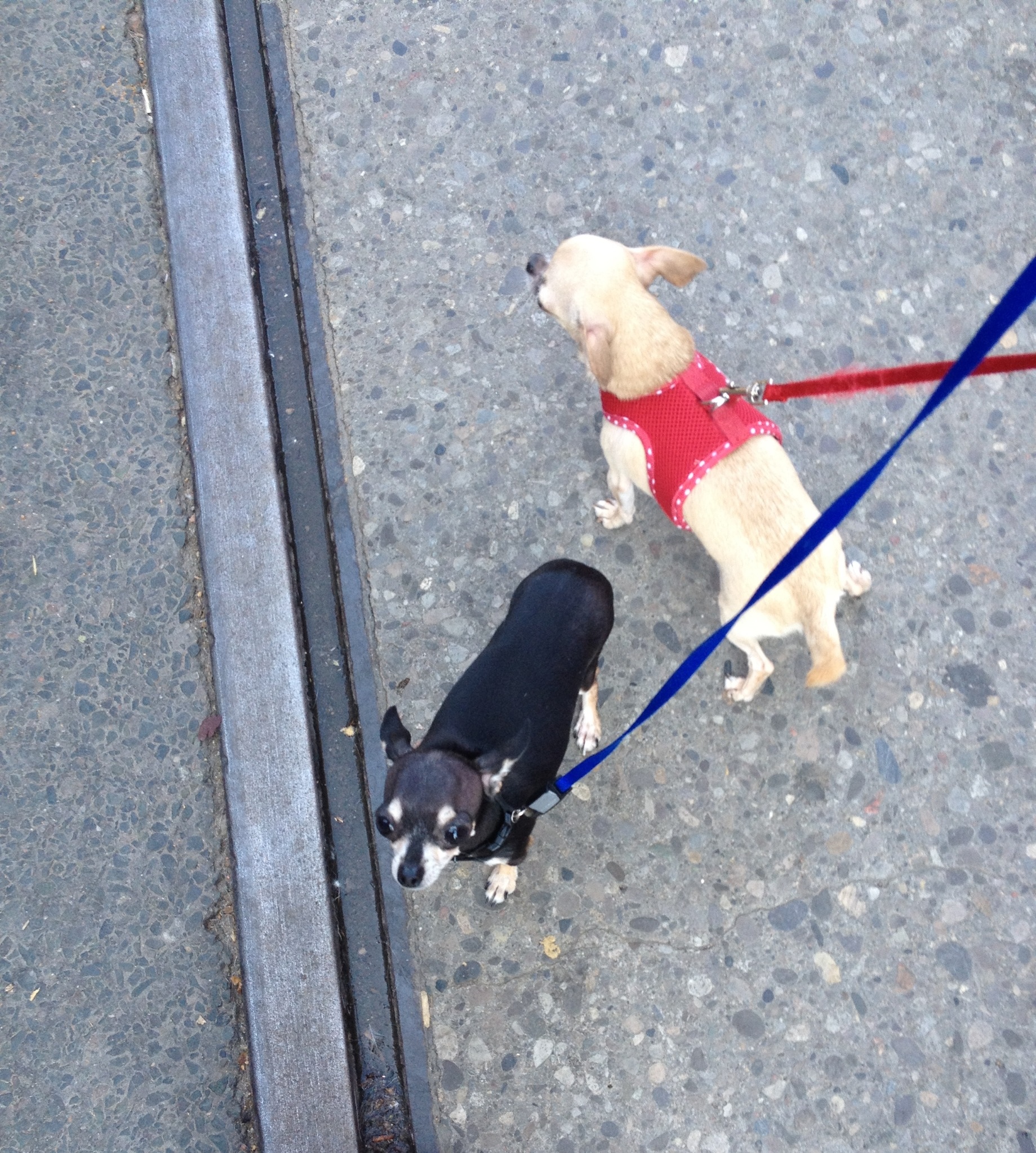 Here’s a video of poor Brucie in the backseat with all the windows open putting up with all the wind. There was also a very small chihuahua downtown that we met. I’ve never seen another adult Chihuahua the same size as Bruce. She looked like she was a little bit shorter than Bruce, but Bruce wasn’t quite as long and he was skinnier as well.