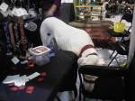 A few nights later, I discovered her stuck in her food bowl. She was stuck in such an odd way, though. Her head was curled under in her bowl, with her left arm under her face – the rest of her limbs and body outside of the bowl. I thought she was dead. When I looked closer, however, I could see, very faintly, that she was still breathing :-S I swear she was breathing every thirty seconds or more. I vaguely remembered reading somewhere that hamsters can hibernate if their environment gets too chilly. My place had been kind of cold at that time. I kept her in my hand to warm her up for over two hours. She seemed to be in a really deep sleep and didn’t want to wake up. When I found her, her paws were so icy – they warmed up a bit after two hours but she was still on the cold side. I gave her a few drops of water with a dropper, and she eventually woke up enough to swallow and then fell back to sleep. In my heart I knew she was going to die, and that she wasn’t just hibernating – she had lost so much weight 😦