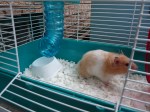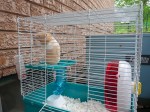 Last year after coming back from vacation, I was getting pet supplies at PetSmart when these cute little baby hamsters caught my eye. Always a sucker for cute little animals, I asked the salesperson about them. She happened to bring up that she had a previously injured older hamster whose leg had since healed after being broken and was looking for a good home. Apparently, she loved to climb the walls of the PetSmart hamster enclosures and broke her leg after a fall. The vet had seen her and her broken leg had healed nicely and they were rehoming her free of cost.